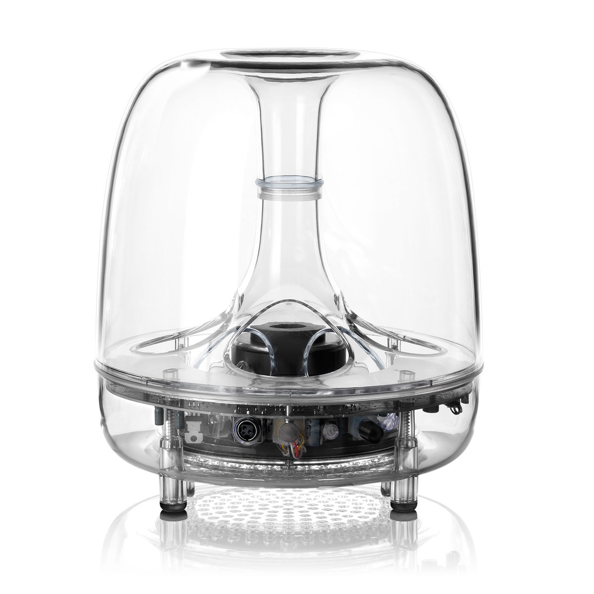 In addition to 40 watts of amplification, the SoundSticks Wireless system also features a 6-inch (160-millimeter) down-firing subwoofer with volume control. By aiming sound down instead of sideways, your subwoofer makes your system less susceptible to adverse room variables – and gives you consistent performance. The subwoofer also has a flared port that reduces port noise during high-volume audio passages. This feature helps you tailor sound levels based on your room’s specifications as well as your own listening preferences.